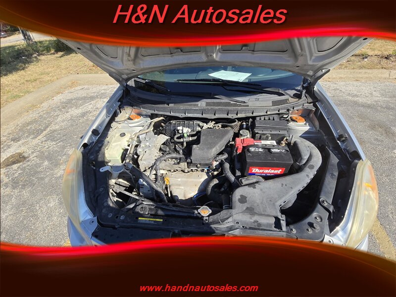 This 2013 Nissan Rogue S comes with a reliable 2.5L I4 engine producing 170hp and 175ft. lbs. of torque. The factory default features include keyless entry, power windows, power mirrors, air conditioning, cruise control, AM/FM stereo with CD player, and auxiliary input. The exterior is finished in a sleek Silver color, complemented by a Black interior. With below 121,000 miles, averaging less than 10,000 miles annually, this Rogue offers good mileage at 23 MPG in the city and 28 MPG on the highway. In excellent overall condition, this vehicle is a solid choice for those seeking a dependable crossover.